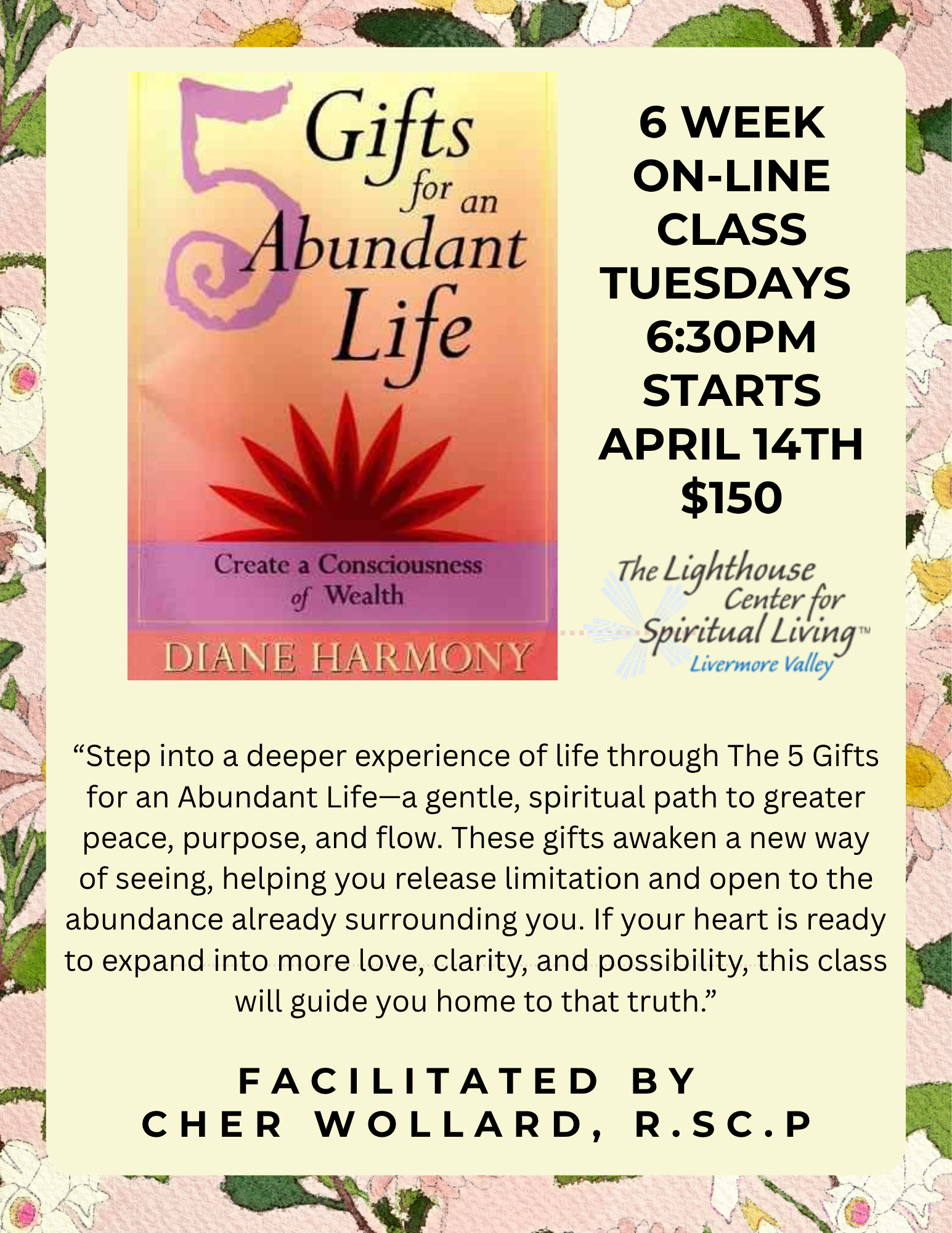 This class explores Diane Harmony's book of same name, to Create a Consciousness of Wealth.